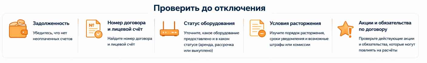 Номер договора и лицевой счет лучше найти заранее, чтобы не искать их уже в момент отказа от услуг. Если номер под рукой не сохранился, помогут способы узнать номер договора интернет-провайдера. А по условиям отключения и оборудования стоит помнить простую вещь: у провайдеров вопросы расторжения, переноса услуг, возврата техники и расчетов обычно оформляются как отдельные процедуры, поэтому перед отключением полезно заранее проверить не только сам порядок отказа от услуг, но и все связанные условия по оборудованию.