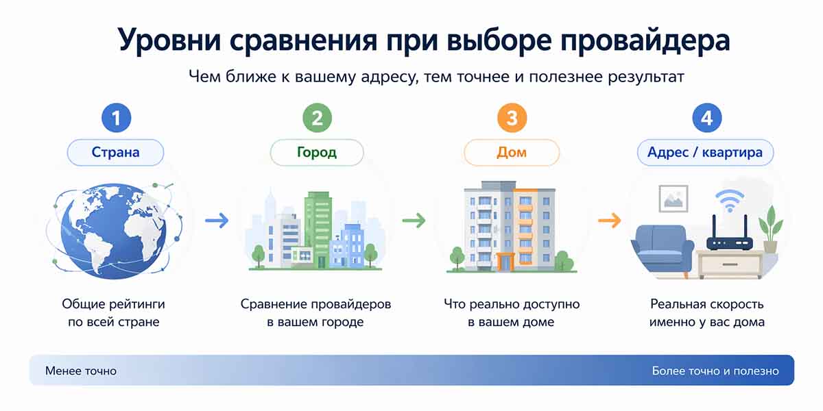 Чем ближе сравнение к конкретному адресу, тем полезнее оно для реального выбора провайдера